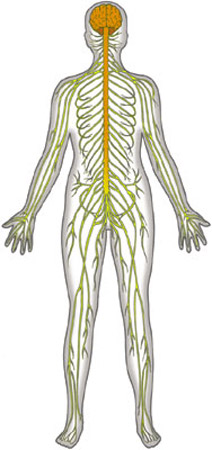 Il est composé du cerveau qui est protégé par le crâne, de la moëlle épinière qui se trouve dans la colonne vertébrale, et des nerfs qui sortent entre chaque vertèbre.